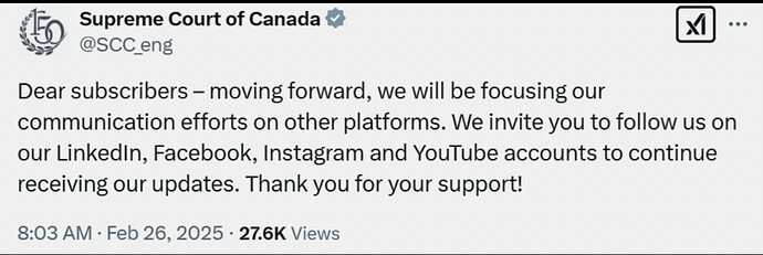A broader strategy for the federation of everything is certainly desirable, but it starts with meaningful first steps like this. Whether public communications transition to the fediverse or not is a more complex discussion, and it largely depends on the ability of Canadians to find and use alternative platforms that provide the engagement and content that they need.